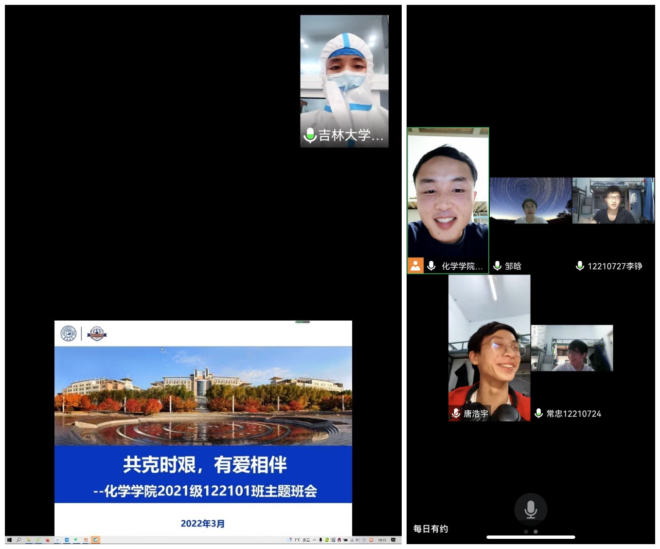 由于与本学院学生不在一个楼宇,他通过“云见面”方式每天与学生交流互动。以“共抗疫情,我们在一起”“共克时艰,有爱相伴”等为主题,组织开展班会10多场次,通过讲抗疫故事,讲吉大故事激发学生爱国情、强国志。通过与同学们互动交流,来排解学生的不良情绪,及时关注学生的心理动态。现在,学生们脸上满脸的笑容,是让他感到最欣慰的事情了。