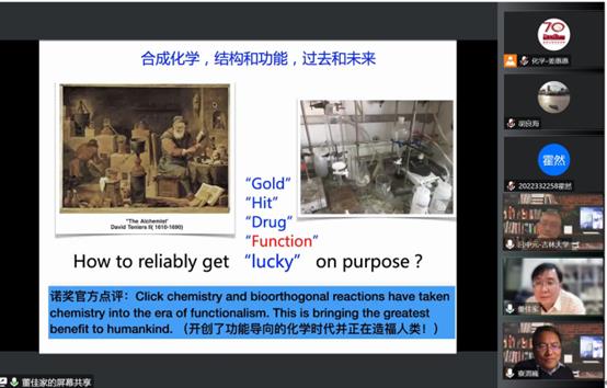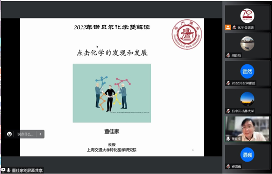 讲座中,董佳家教授围绕点击化学的发现和发展,深入浅出且幽默诙谐地介绍了 “点击化学”——模块化连接砌块分子,实现分子功能的理论本质,并对其开创了功能导向的化学时代进行了详细解读。同时分享了K. Barry Sharpless教授乐于学习、善于发现、勇于探索的科学精神以及Sharpless教授生活工作中的一些有趣的小故事。随后,董佳家教授激励广大学子,希望当代青年学者能够学习发扬老一辈化学家的科学精神,内化于心,外化于行,勇攀学术高峰。在交流互动环节,董佳家教授耐心详细地解答了院内外师生的问题,并对点击化学领域的发展做出了展望,袋鼠影视