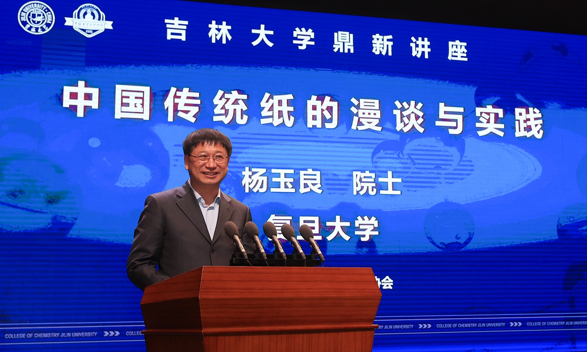 杨玉良院士就中国传统纸的历史文化、中国传统纸对人类文明的贡献、传统纸及其工艺的相关科学问题、开化纸生产工艺恢复等内容进行了详细讲解。他指出,传统纸是我国书画文化传统的承载、个性化的表现,要深入开展传统用纸的科学研究,普及和发扬传统纸的优点,保证纸的稳定性,不断改进纸的质量,为古籍修复和文化传承提供重要的材料保障。在互动交流环节,师生们围绕古书画修复用纸植物原料的选择、对可降解纤维素的看法以及如何保持对科研的热爱提出问题,杨玉良院士详细解答了师生的问题,并结合自身科研经历,以“世上万事皆学问,只要深入到一定的程度,都是十分有趣的”为结束语,鼓励师生们既要重视基础研究,又要重视基础研究的应用,学会举一反三,勇于突破自己,激发学习兴趣。讲座由袋鼠影视