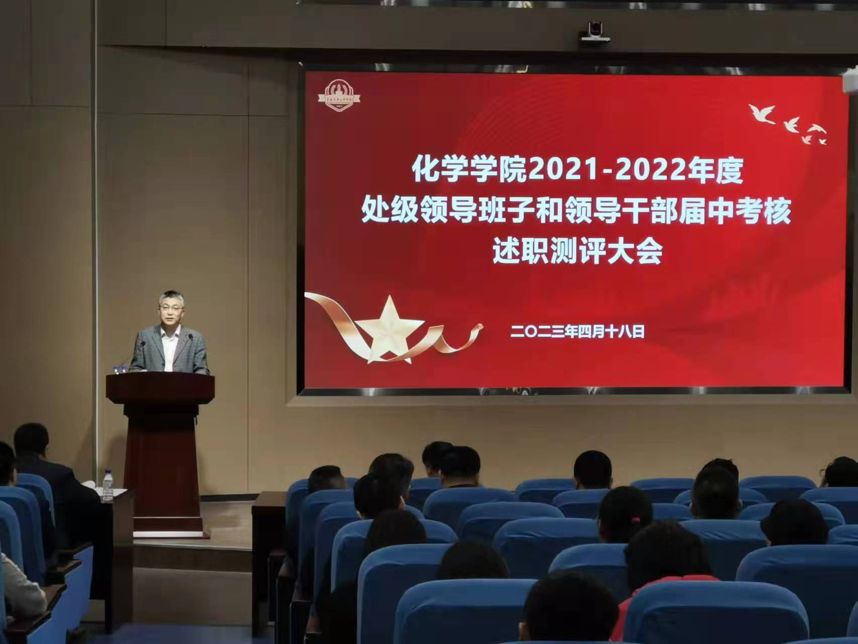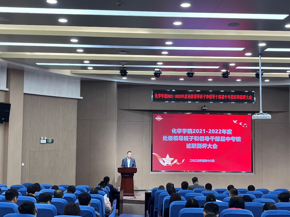 在无机-超分子楼二楼报告厅召开处级领导班子和领导干部届中考核述职测评会议。