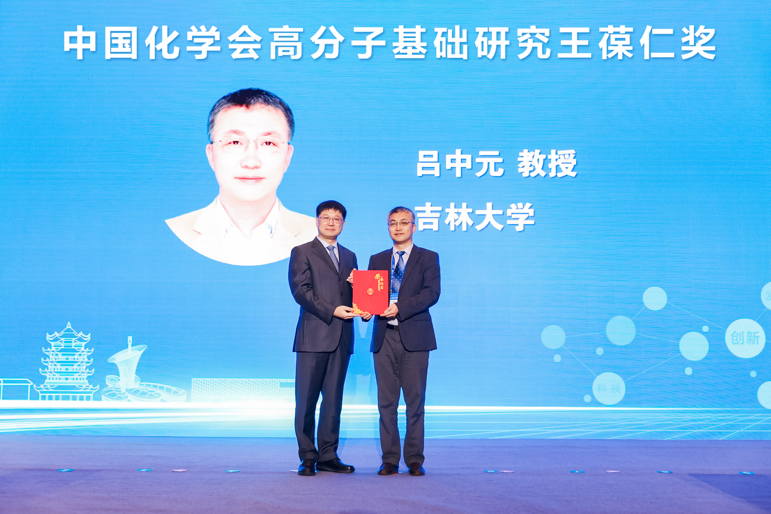 开幕式上,中国化学会授予我校吕中元教授“中国化学会高分子基础研究王葆仁奖”,以表彰他在“超分子和高分子自组装动力学模拟”领域取得的系统性创新成果;授予孙俊奇教授“中国化学会高分子科学创新论文奖”,以表彰他在“高强度可修复超分子形状记忆塑料”方面的创新成果。在颁奖仪式上,张希为全体获奖人颁奖,吕中元代表获奖人发言。