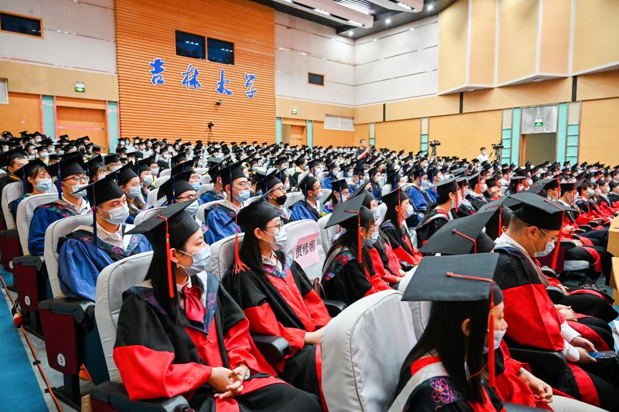 于吉红院士、吕中元教授、杨柏教授、王悦教授作为主礼教授共同为2021届毕业生同学们拨动流苏、授予学位。