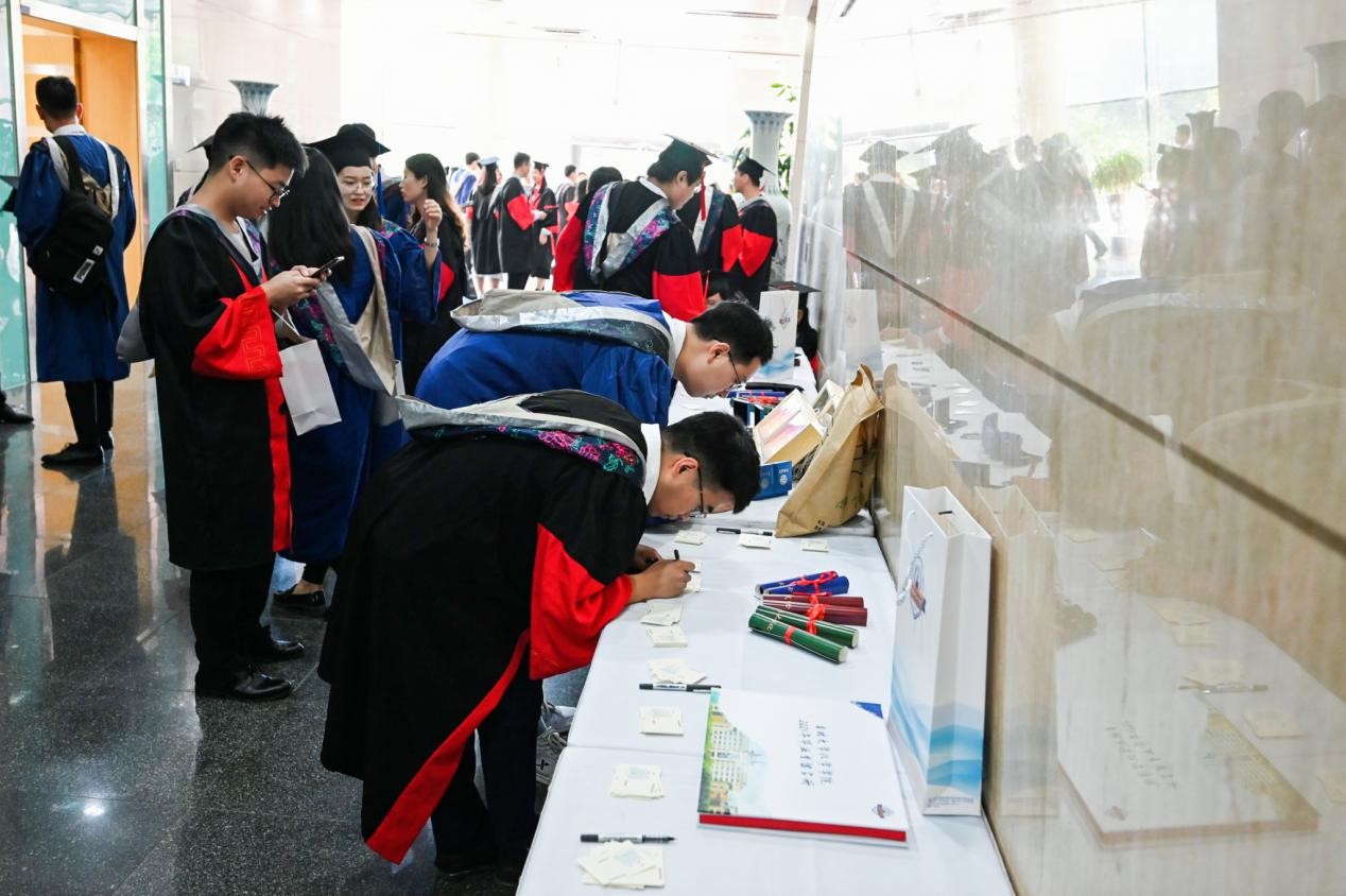 王悦教授代表全院教师表达了对毕业同学们的祝福,并给予了两点希望:一是建议同学们把握好决定人生成长轨迹和事业发展高度的未来10年,在“兴趣与爱好”、“专业特长”和“理想的生存环境”三者之间找到平衡点,尽快完成事业发展方向的定位;二是建议同学们多些常识、多些见识、多些同理心、多些担当、多些反思,用勤奋与智慧续写丰富多彩的人生。