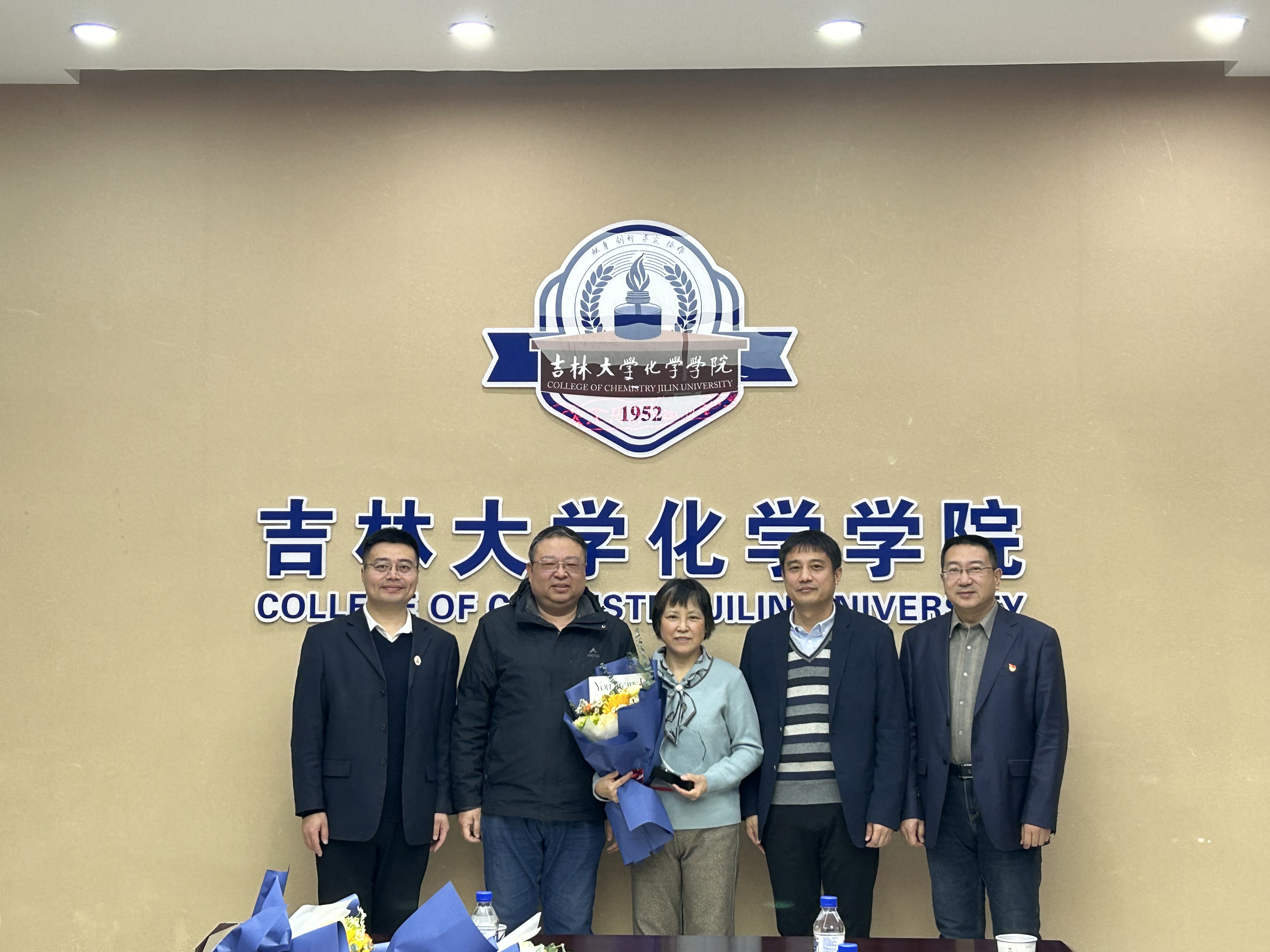 荣休纪念牌,系(所)实验室相关负责人为退休教师敬献鲜花,并合影留念。