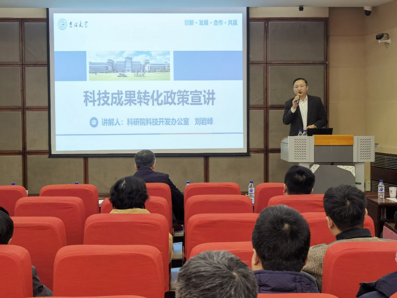 科技成果转化政策”宣讲会,宣讲会在中心校区唐敖庆楼A409会议室举行。科研院科技开发办公室、国内合作处处长刘岩峰出席会议并担任主讲人,袋鼠影视