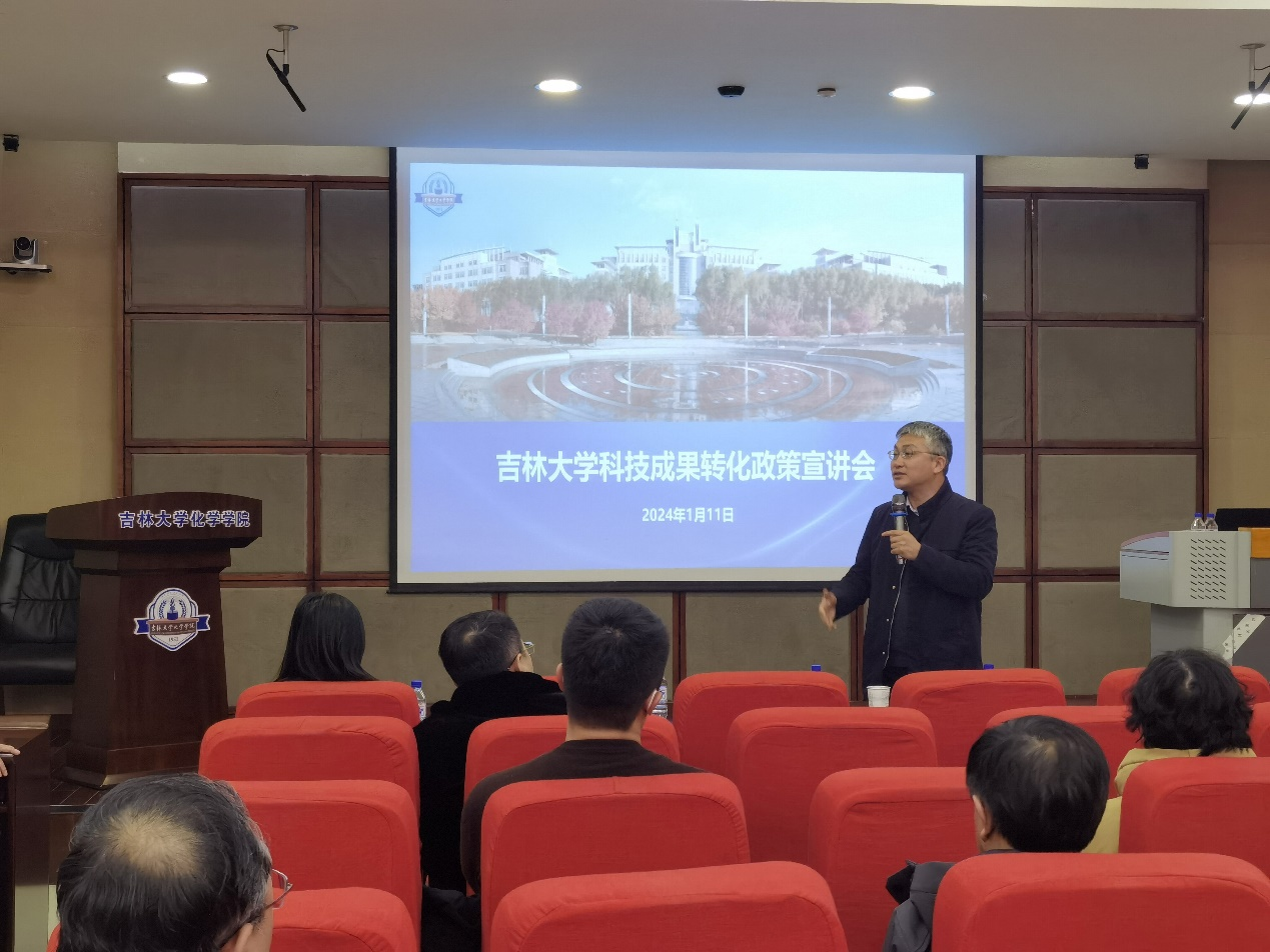 会上,刘岩峰处长从科技成果转化政策、转化模式、概念验证、服务平台等方面进行了多角度、全链条式的解读与分析,并通过分享近两年学校科技成果转化案例,向在座的老师展示了科技成果转化带来的实际效益和影响。他指出,各级政府和学校围绕打通科技成果转化“最后一公里”,不断深化科技体制改革,制定出台了一系列高含金量的政策举措,为科技成果落地转化“架桥铺路”。因此,希望各位老师能够深入了解相关利好政策,顺应国家科技发展浪潮,将吉大化学的科研成果转化在吉林省的土地上。