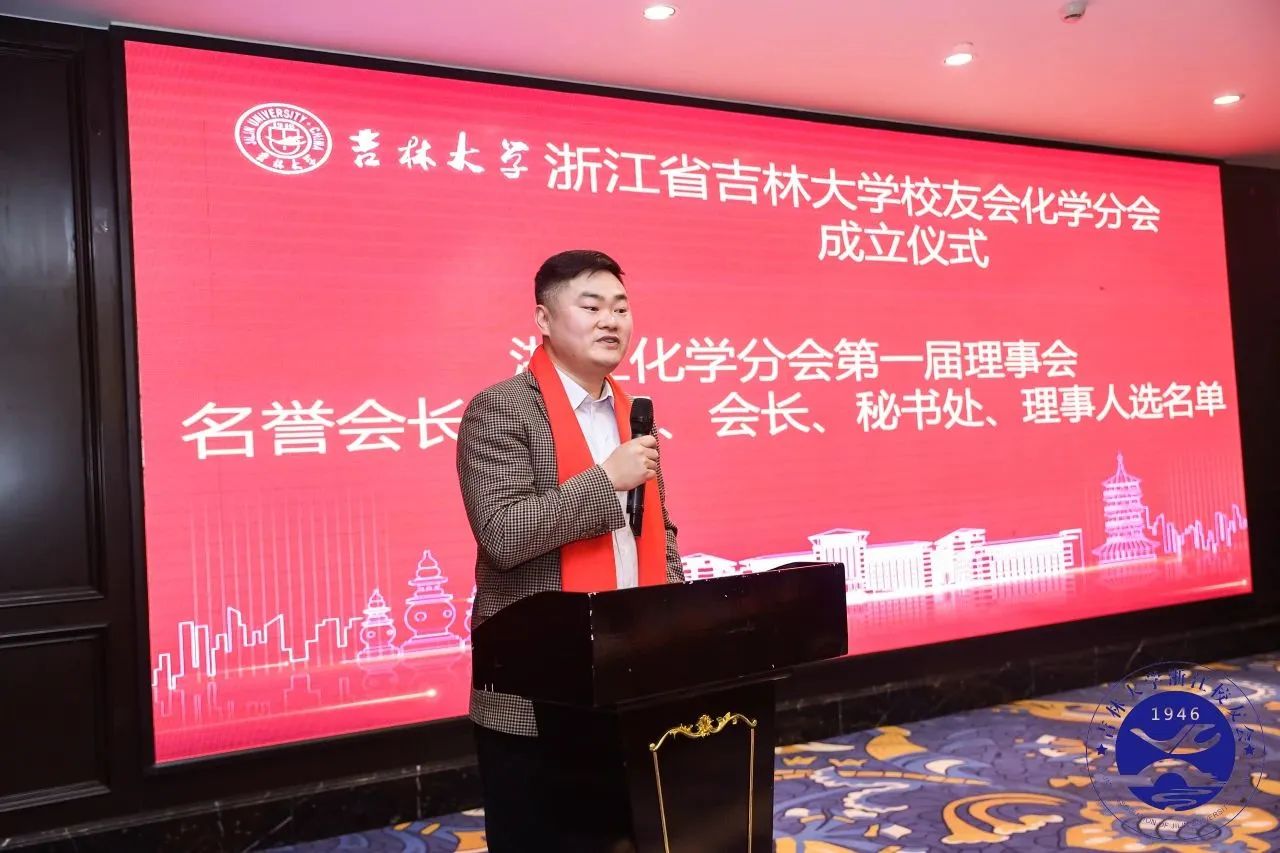 校友会化学分会继续传承化学学科的优良传统,弘扬“献身、创新、求实、协作”的化学精神,在增强校友间凝聚力的同时,进一步提高吉大化学在浙江和周边的知名度与影响力,实现校友、学校、地方的互利互赢和共同发展。同时,他希望化学校友积极参与化学分会的活动并团结在分会的周围,弘扬校友文化,共同谱写校友与学院合作发展的新篇章。
