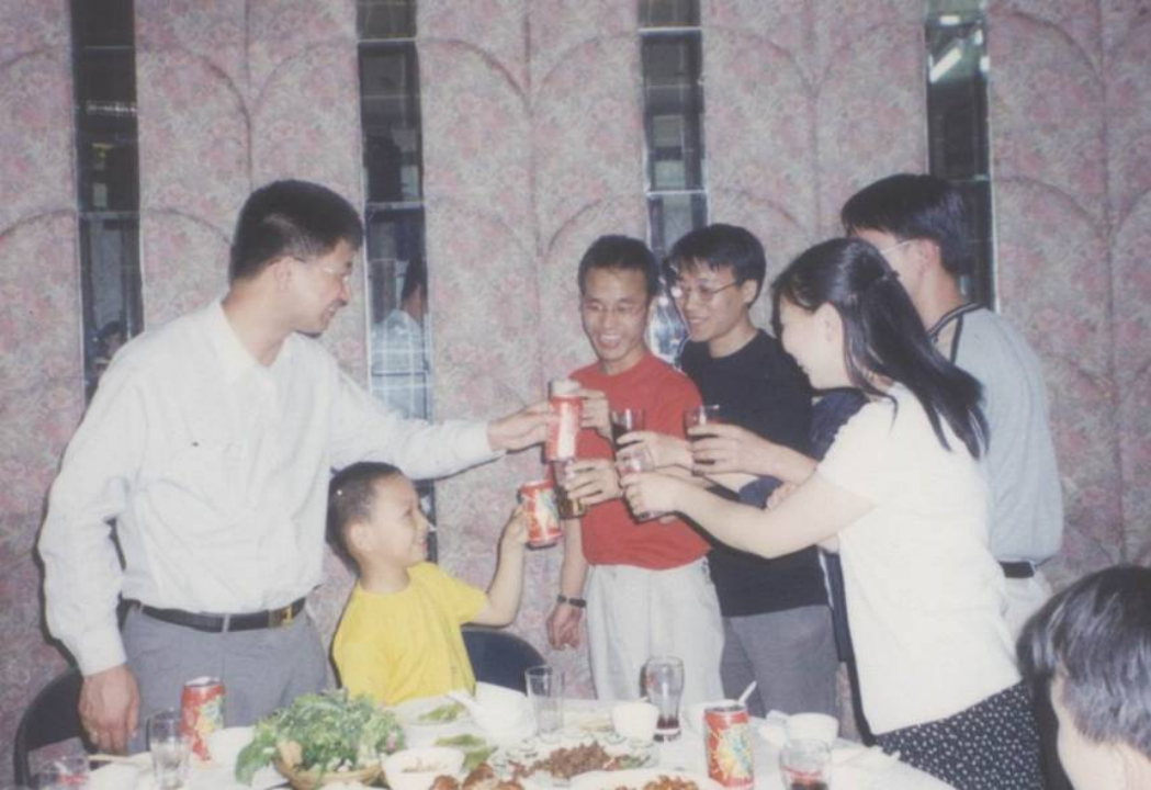图2 2001年6月,Dendrimer研究小组(张丽,霍峰蔚,董斌,许华平(左三)