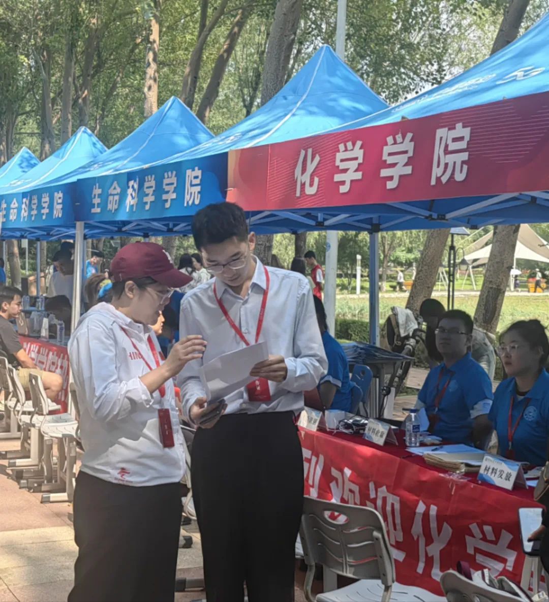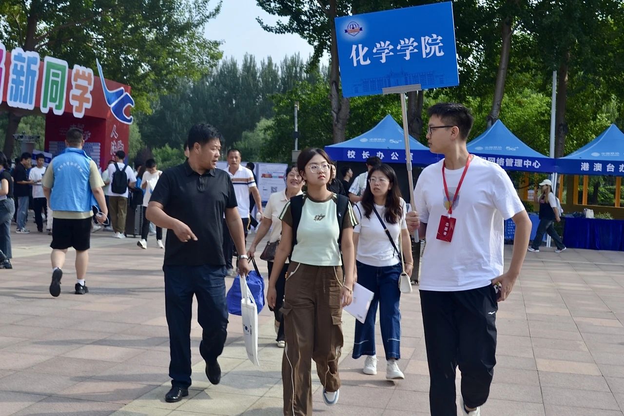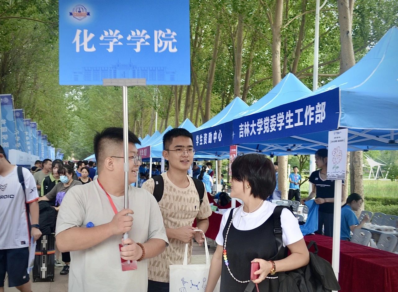 迎新现场,学院党委书记马本华、院党委副书记兼副院长江宇航与前来报到的2024级新生亲切交流,欢迎他们加入吉大化学这个大家庭,并慰问了现场的工作人员和志愿者。学院领导与新生及家长深入交流,详细了解学生的家庭状况、经济来源及实际困难,“从哪里来?”“家里是否受灾?”“还有哪些困难?”,一句句暖心话语直抵人心。