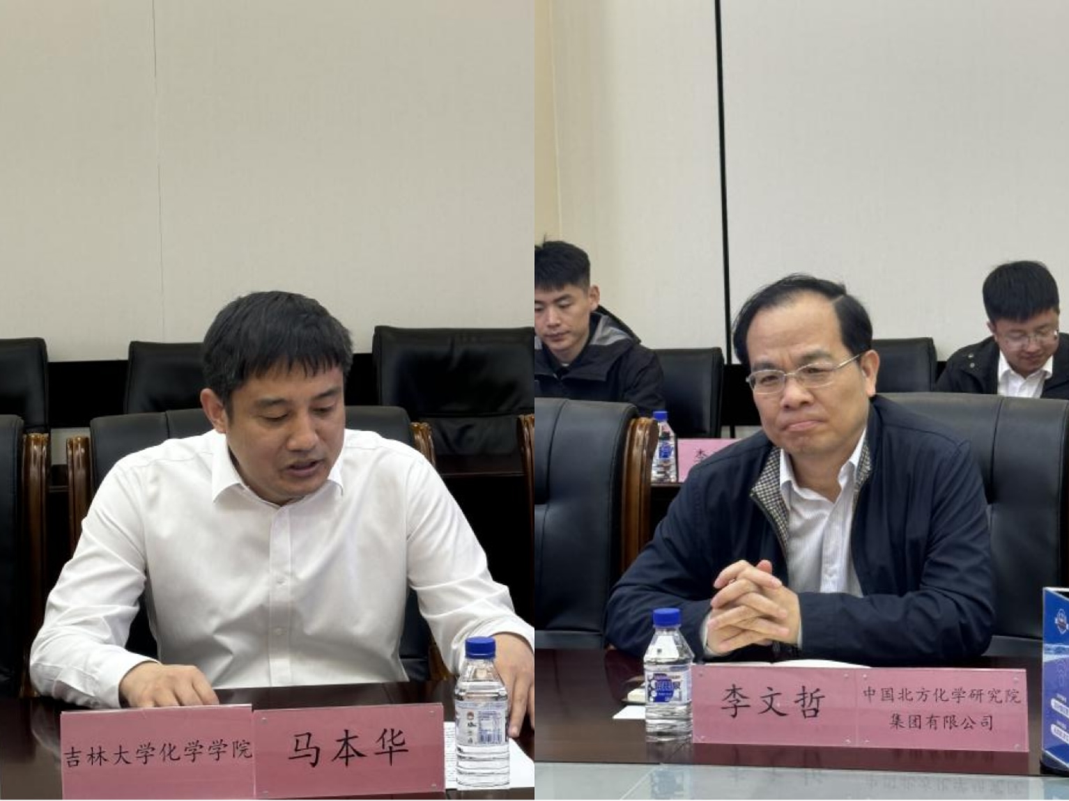 马本华在致辞中对李文哲一行的到来表示热烈欢迎,并全面介绍了学院在学科发展历程、科研平台及人才培养等方面的情况。他表示,吉大化学非常重视与北化研究院集团的合作交流,希望未来在人才输送、科学研究、成果转化等方面可以进一步开展合作。