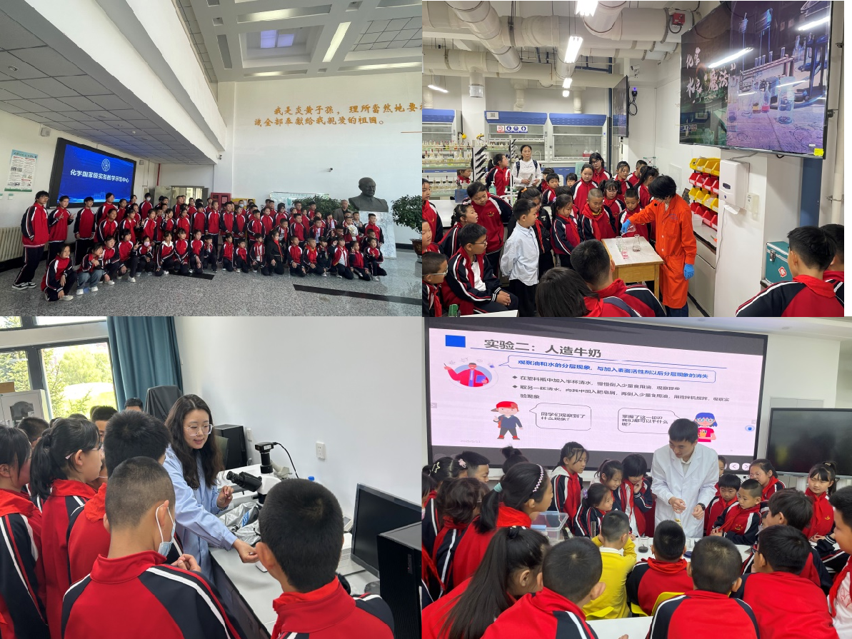 在实验中心屈学俭、闫瑾、李雅洁三位教师及2023级本科生周子驭的指导下,师生们深度参与《化学水之“魔法”》《分散系与胶体的奇妙世界》趣味化学小实验,学生们在动手操作中观察实验现象,并在互动问答中积极提问、踊跃分享。活动还特别安排了高分子科学实验室参观环节,学生们近距离观察显微镜等精密仪器,感受科技魅力。