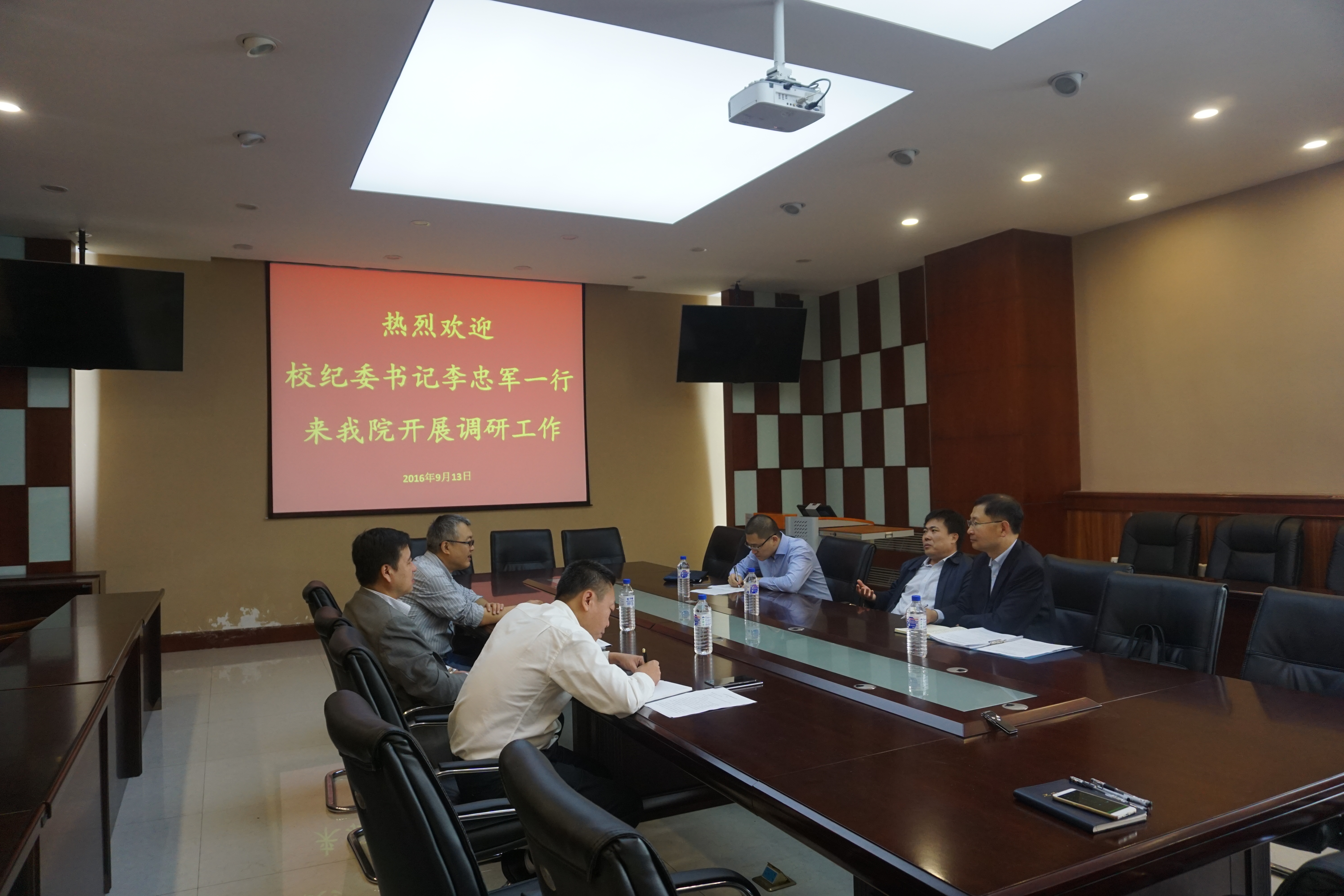 2016年9月13日,校党委副书记、纪委书记李忠军,副书记王国强等一行3人来我院开展督查调研工作,学院党委书记丁世海、院长杨文胜、纪委书记李勇出席了此次督查调研工作会。