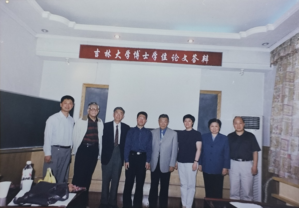 图5 2001年6月,我博士论文答辩后与答辩委员会老师们合影。左起:张希、汤心颐、姜炳政、孙俊奇、沈家骢、迟力峰、周恩乐、杨柏