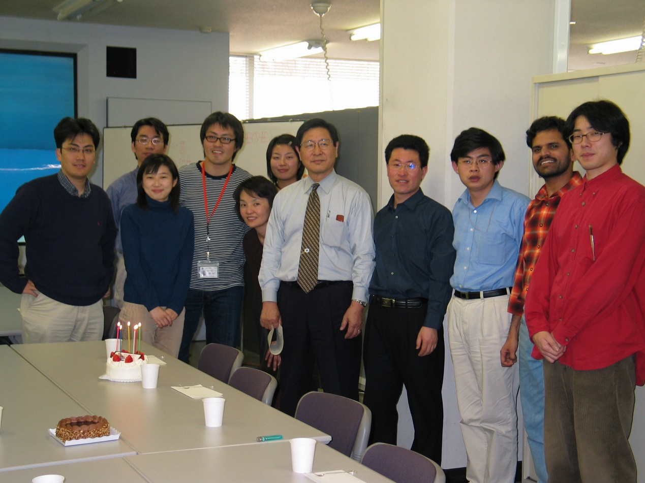 图7 2003年,国武丰喜教授生日,与课题组成员合影。右5为国武丰喜教授