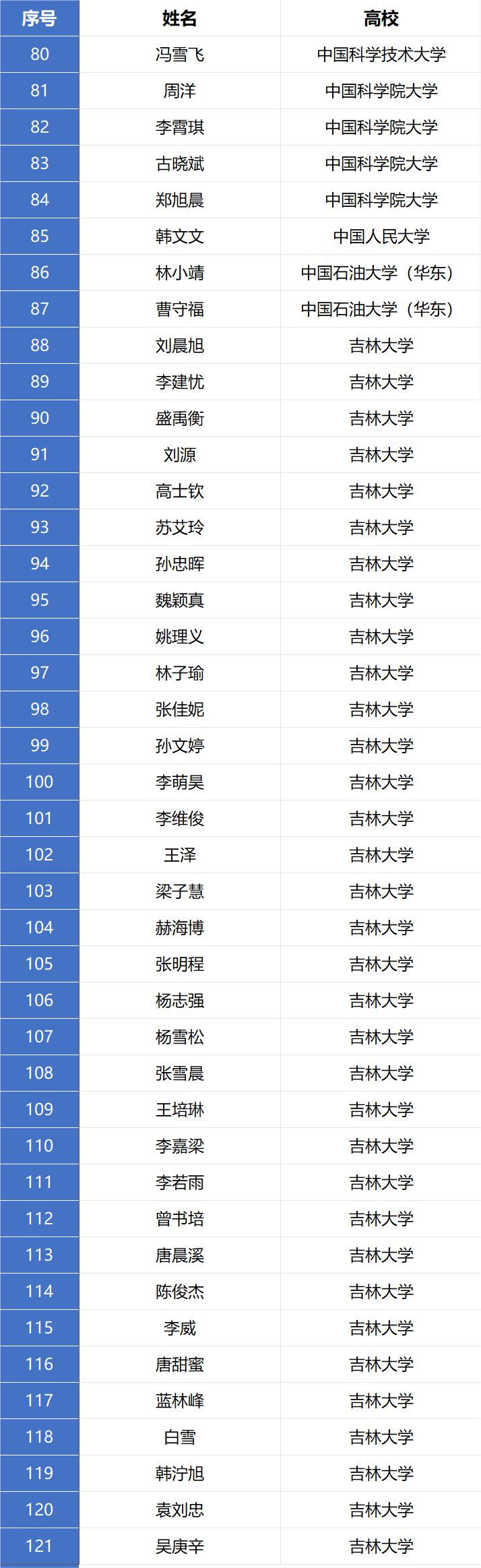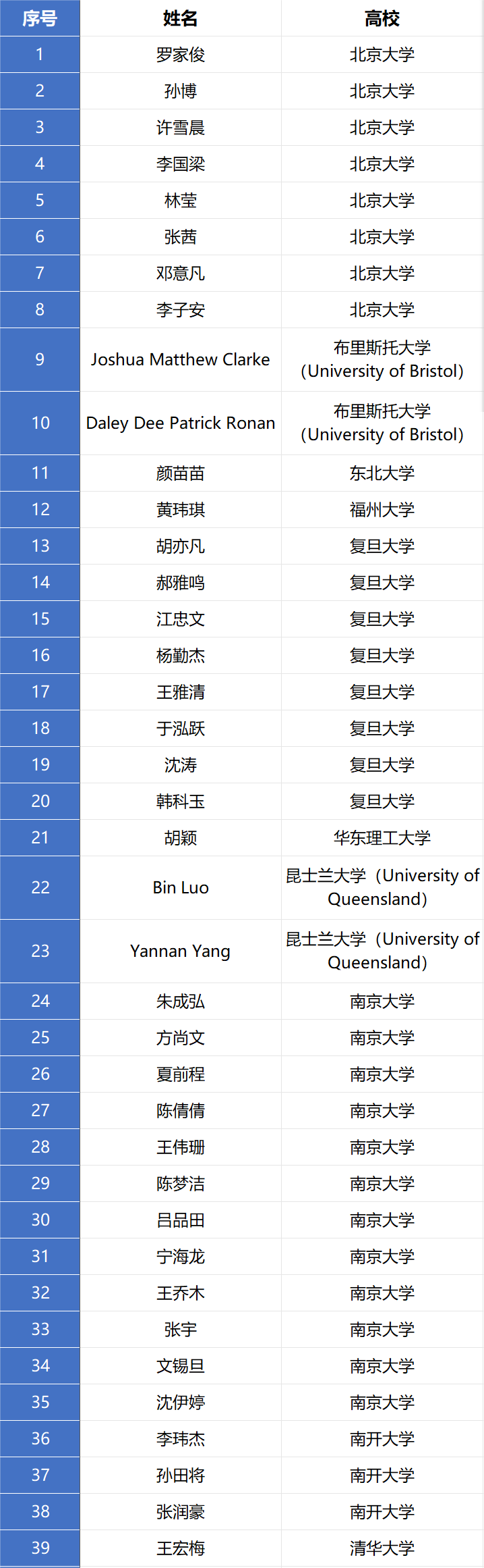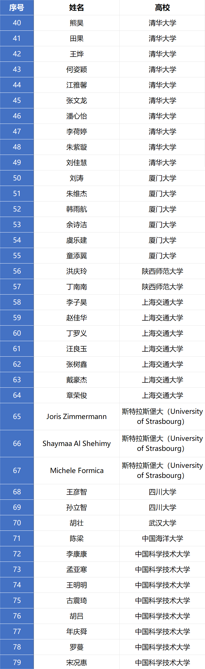 建立深度合作关系的十余位国外知名院士、专家做主旨报告,国内外化学及相关学科优秀博士生以口头报告及墙报展示的形式共同交流学术思想。此外,美国化学会将继续参加本论坛,举办丰富多彩的ACS学术冷餐会活动,邀请相关编辑围绕同学们广泛关注的投稿策略、成果展示、职业规划等主题开展互动活动,进一步拓展国内博士研究生的国际视野。本届论坛共收到来自各高校博士研究生投稿382篇,经专家初评,录用口头报告121份,名单如下: