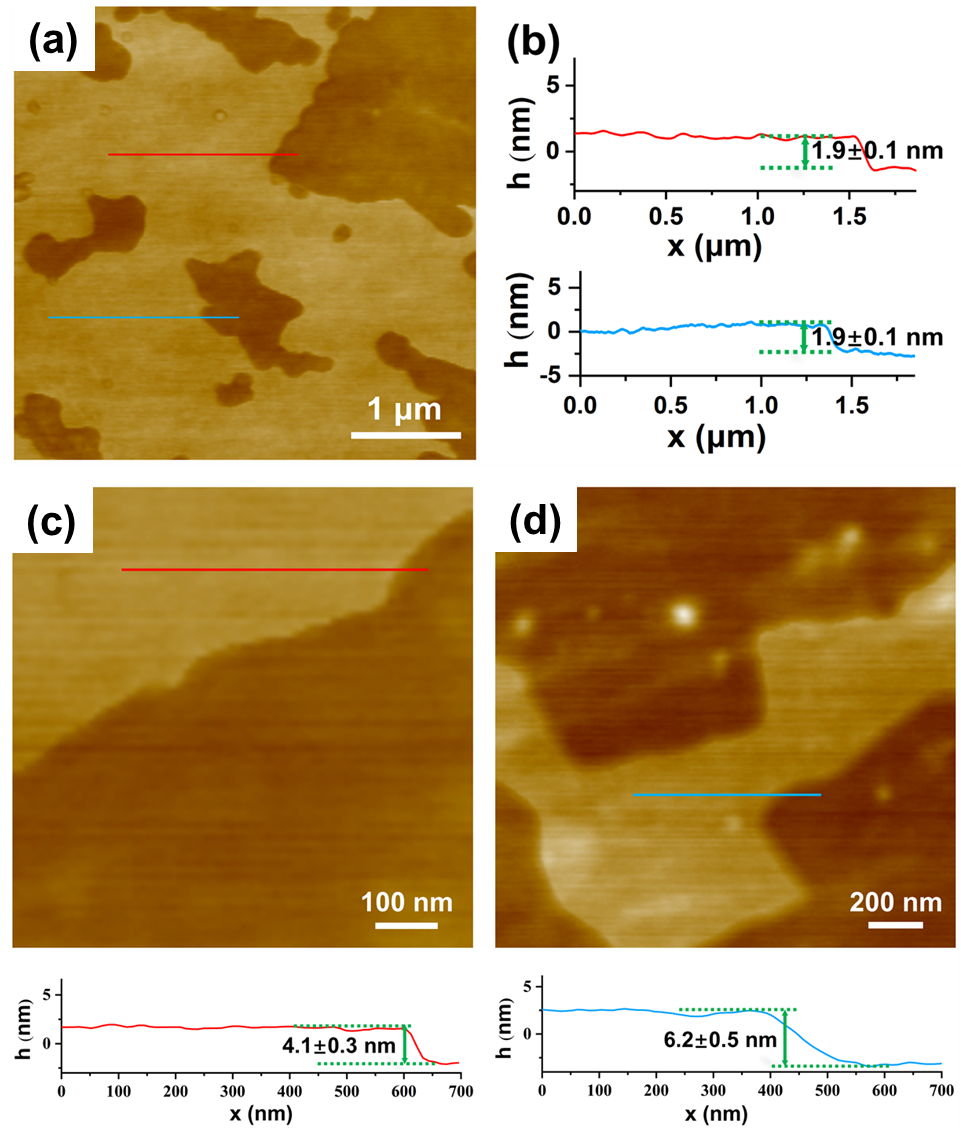 图3“软”二维COF的寡层结构AFM图