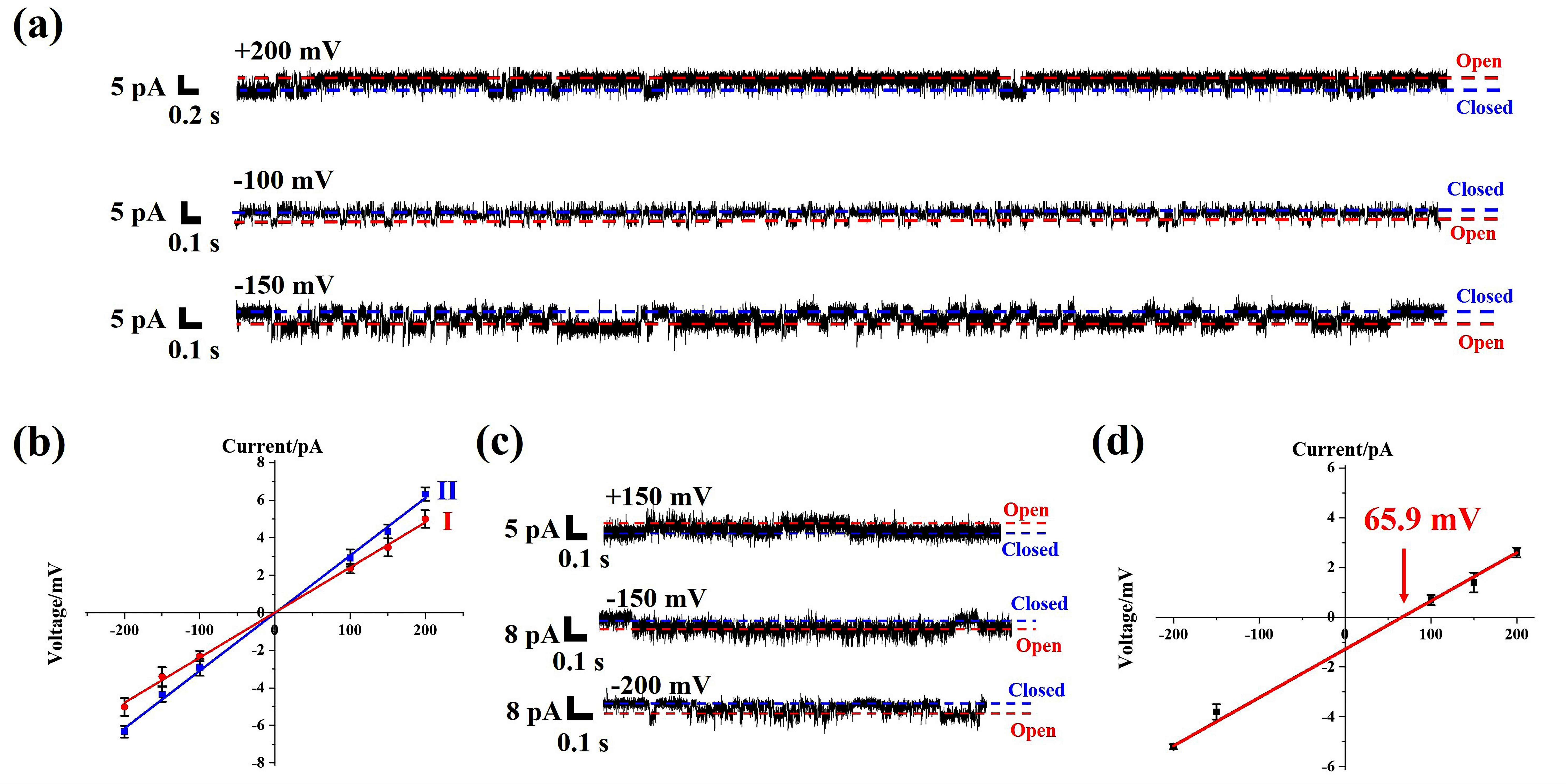 图3.仿生钠离子通道M3的BLM测试分析图。