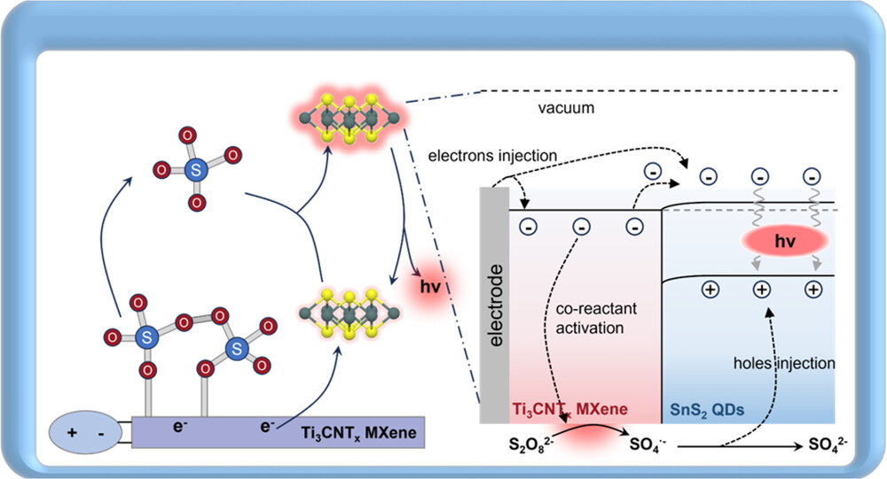 SnS2QDs@MXene异质结电化学发光机制示意图。