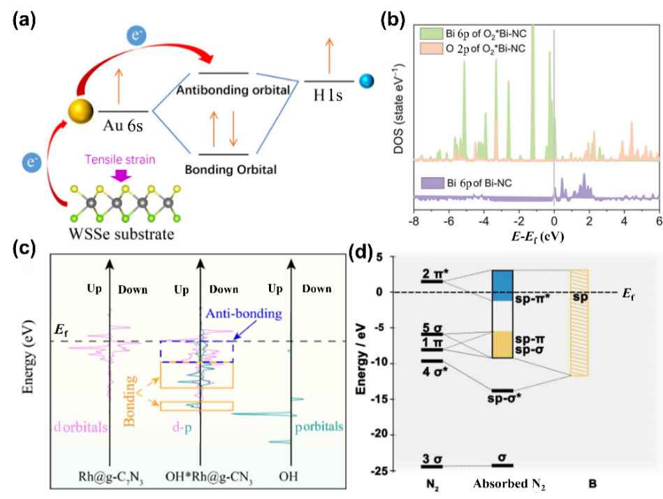 图4 单原子活性位点和基底的轨道杂化和杂化构型