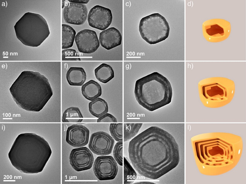 结构工程是将材料构筑成特定的空间拓扑构型,为现代功能材料科学与技术的发展奠定了重要基础。多层中空结构通常由两个或更多的壳层以及其层间的空腔组成,这类结构因其较短的传质路径、较高比表面积和可调控的负载容量等优势,在催化、能源存储与转化、生物医学等前沿领域展现出广阔的应用前景。目前,研究人员已成功制备出具有多元化学组成(如氧化物、硫化物、磷化物等)的多层中空材料,并实现了对壳数量、壳厚度和壳间距等结构参数的精确调控。然而,这类材料大多仍以非晶或多晶态形式存在,这是因为在三维空间构型中精确控制各壳层结晶过程并保证整体晶格有序性仍面临着挑战。