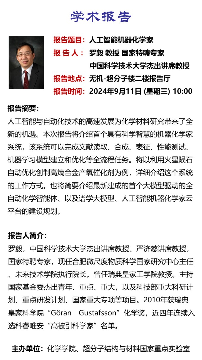 中心校区 无机-超分子楼 二楼报告厅