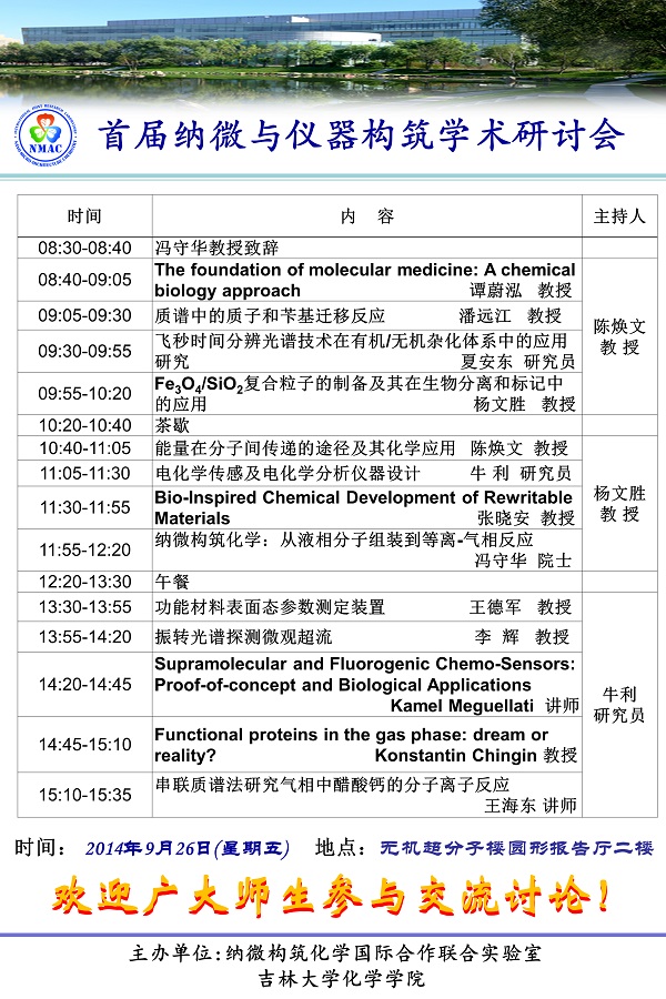 由纳微构筑化学国际合作联合实验室与袋鼠影视 主办的首届纳微与仪器构筑学术研讨会将于