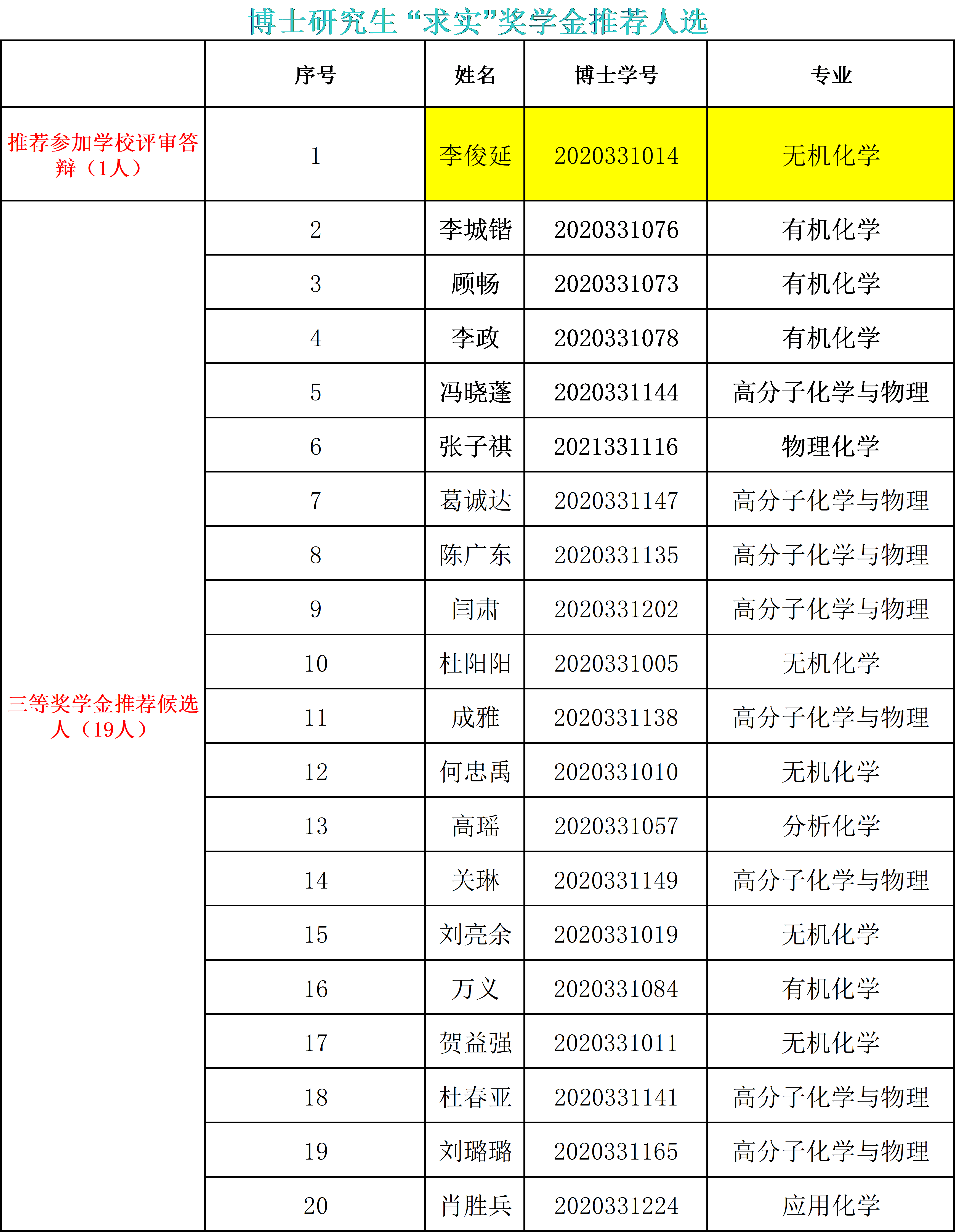 依据《袋鼠影视 博士生“求实”奖学金评选办法》要求,袋鼠影视 采取研究生个人申报、导师推荐、学院研办审核材料、评审工作小组初评推荐、袋鼠影视 研究生奖学金评审委员会审核确定的方式进行评定,现拟推荐1名博士李俊延(2020331014))参加学校评审答辩,竞争一等、二等“求实”奖学金;拟推荐李城锴等19名博士为 “求实”奖学金三等奖候选人(名单见附件),如有问题请联系赵晓杰老师,电话13504470223。