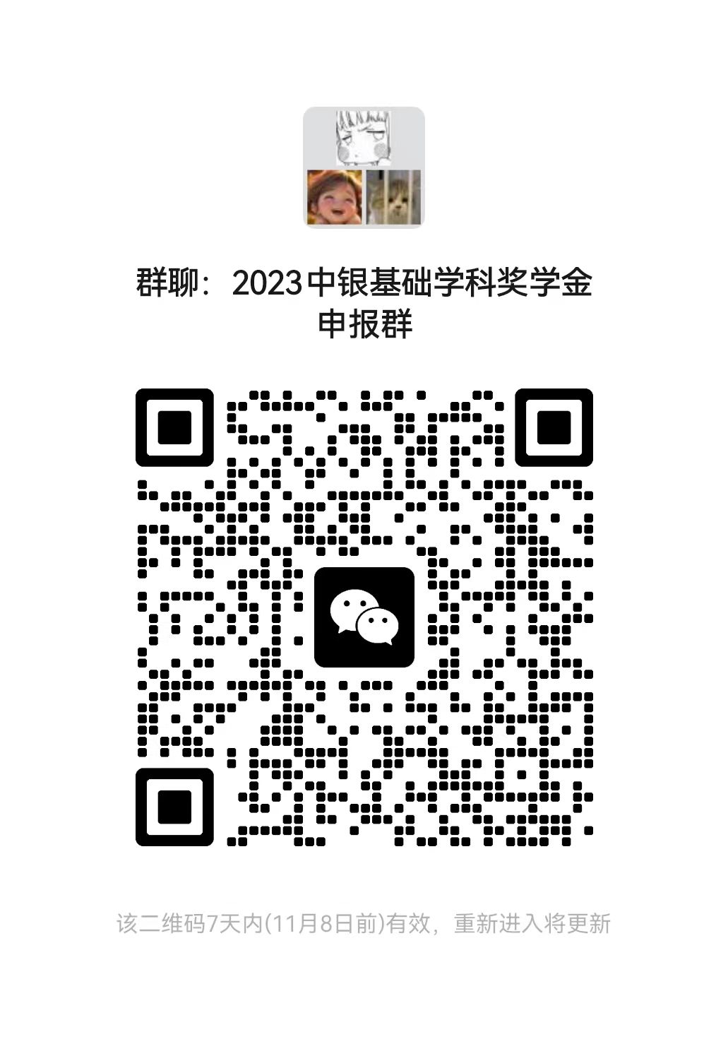 (1)申报研究生于11月3日12:00前使用个人邮箱账号登录“一张表”平台(//one.dsdytv.net),在“研究生评奖评优管理”-“研究生评奖评优申报”栏,点击【新增】进行【中银基础学科奖学金】信息填报,同时扫码加入微信群。