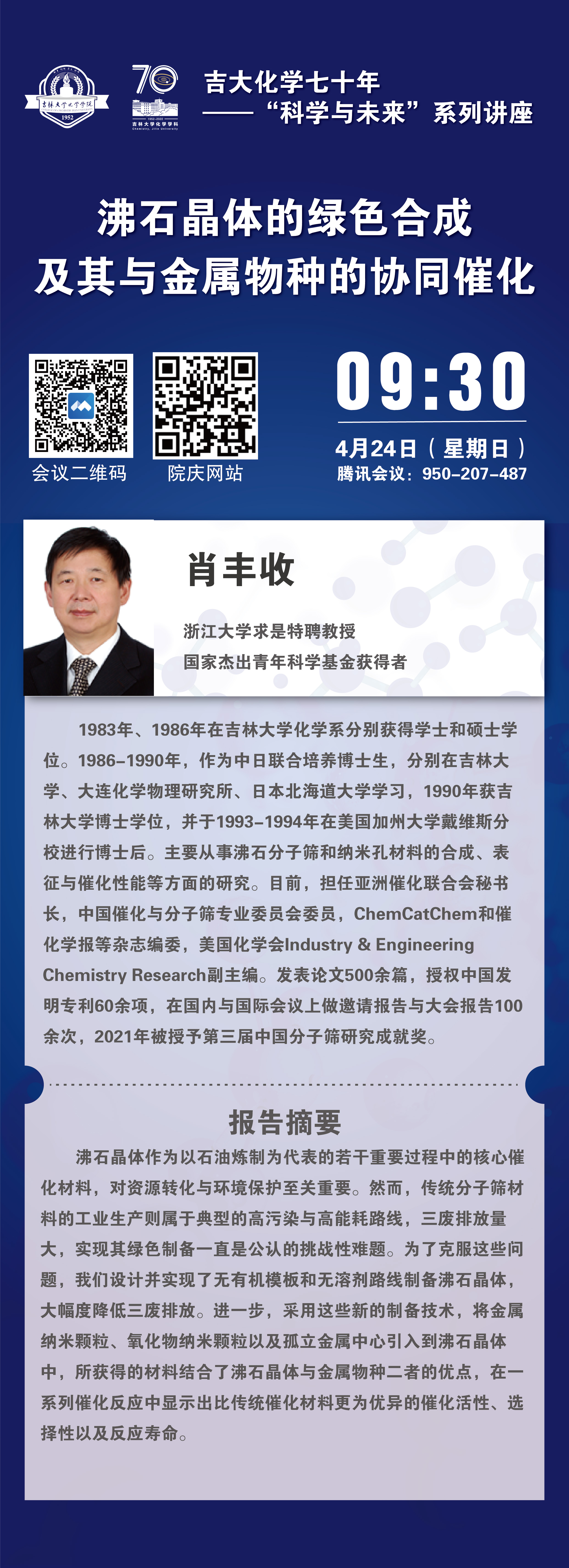 吉大化学70年院庆系列活动——科学与未来系列讲座:沸石晶体的绿色合成及其与金属物种的协同催化