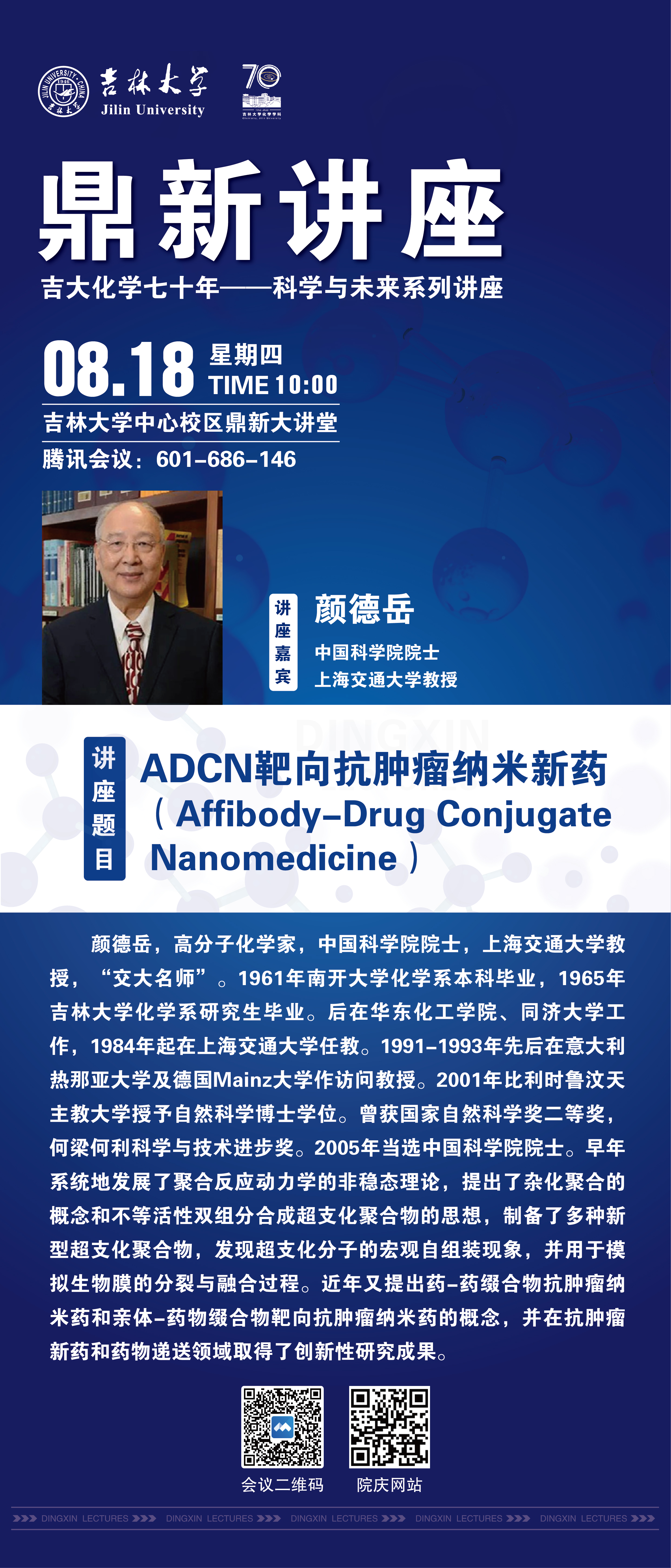 吉大化学70年院庆系列活动——科学与未来系列讲座:ADCN靶向抗肿瘤纳米新药(Affibody-Drug Conjugate Nanomedicine)