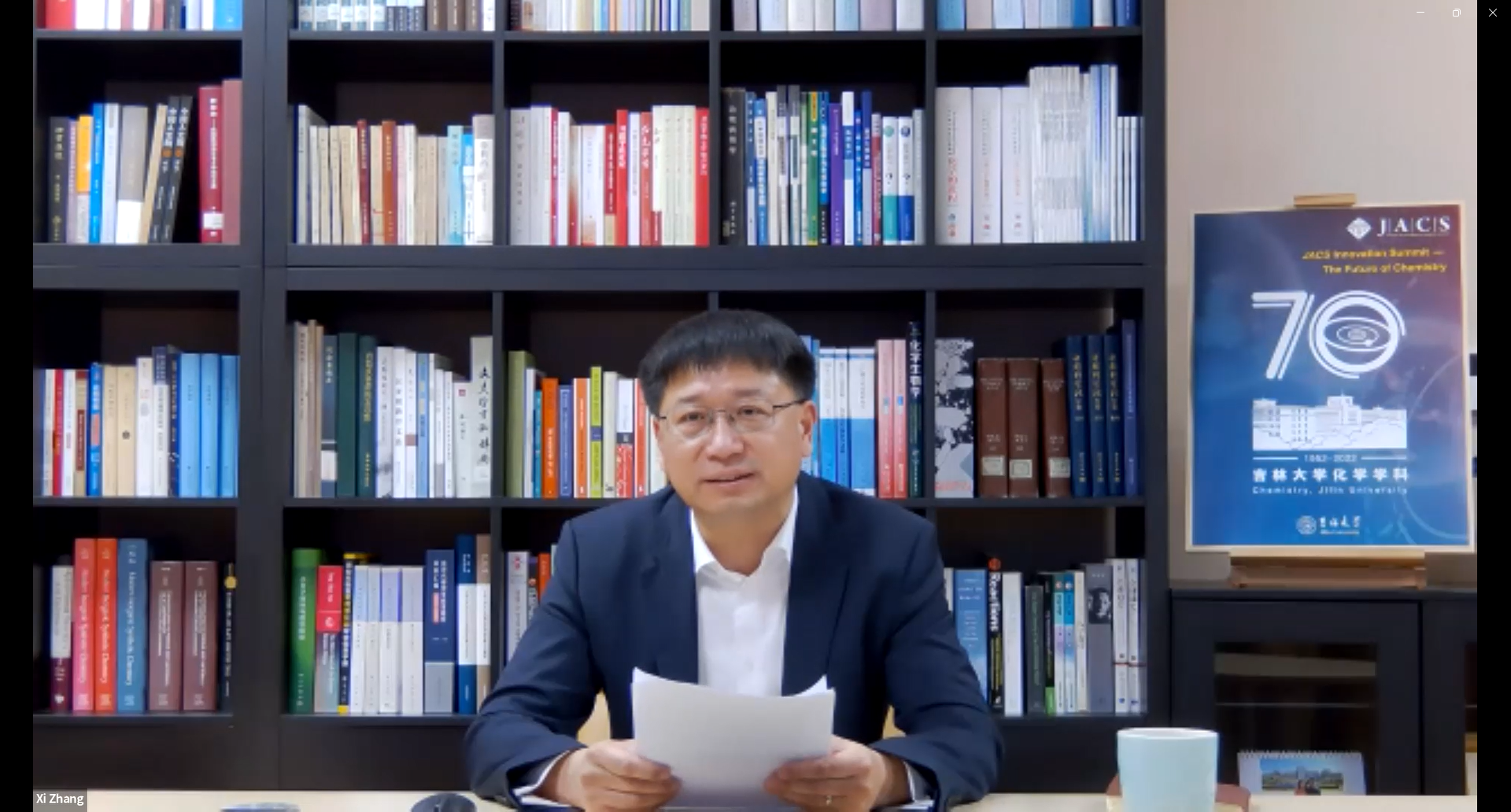 和吉大化学学科的支持,向出席此次化学创新峰会的海内外朋友们表示热烈欢迎。他表示,吉大化学学科创建于1952年,由老一代化学家蔡镏生院士、唐敖庆院士、关实之教授、陶慰孙教授等人亲手创建。70年来,吉大化学学科始终致力于前沿科学创新和高质量人才培养,他本人和参加本次峰会的吉大校友赵东元院士、江雷院士、迟力峰院士、马於光院士、李峻柏教授等都从吉大化学的教育中受益匪浅。希望大家通过此次峰会精彩的学术报告,激发对“化学的未来”的灵感。