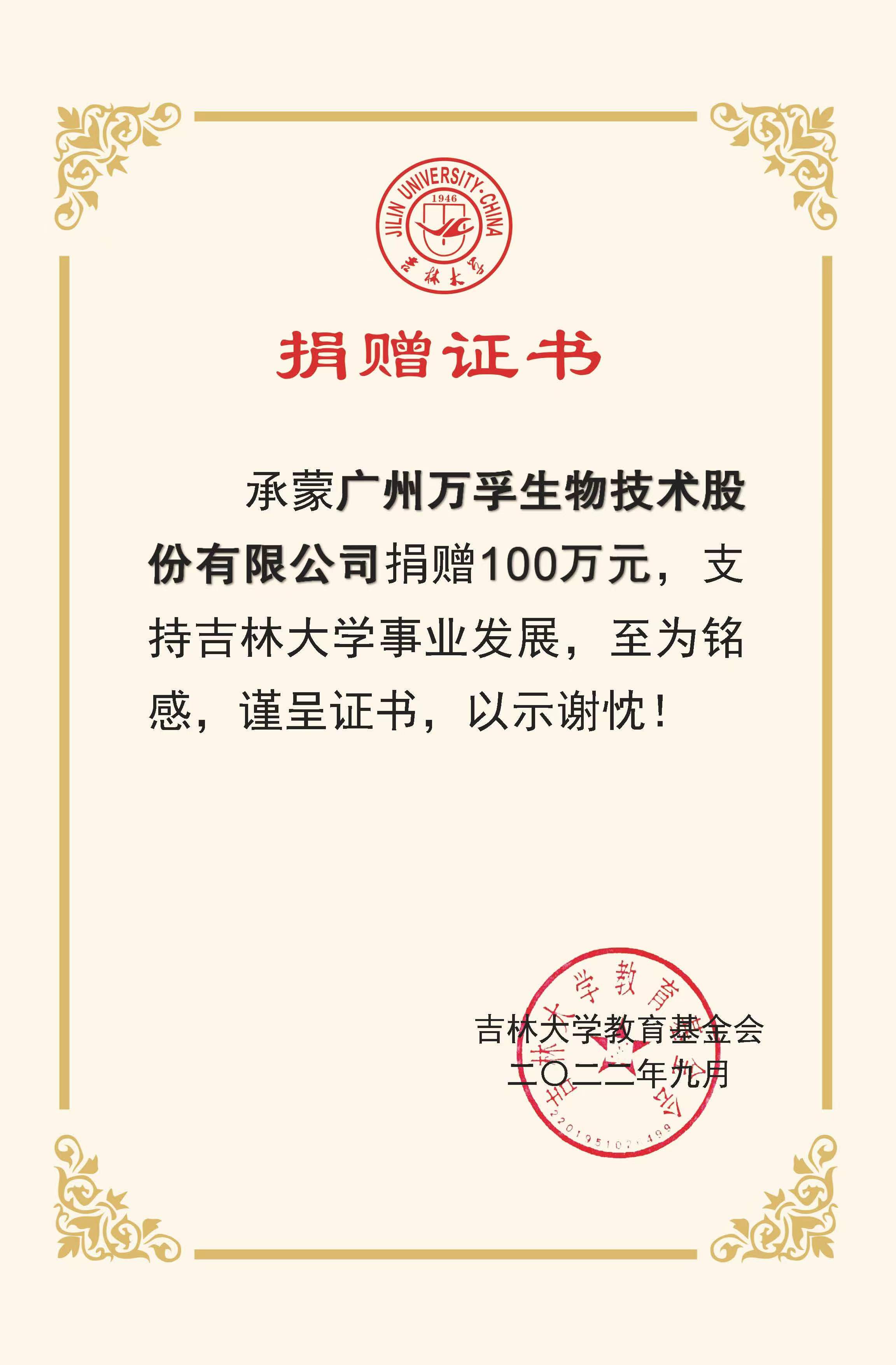 承蒙广州万孚生物技术股份有限公司捐赠100万元,支持袋鼠影视 “关实之—陶慰孙奖学金”发展,至为铭感,谨呈证书,以示谢忱!