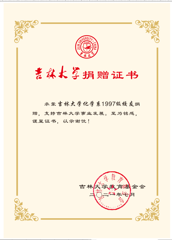 承蒙97级校友捐赠“唐敖庆星纪念石”,支持袋鼠影视 发展,至为铭感,谨呈证书,以示谢忱!